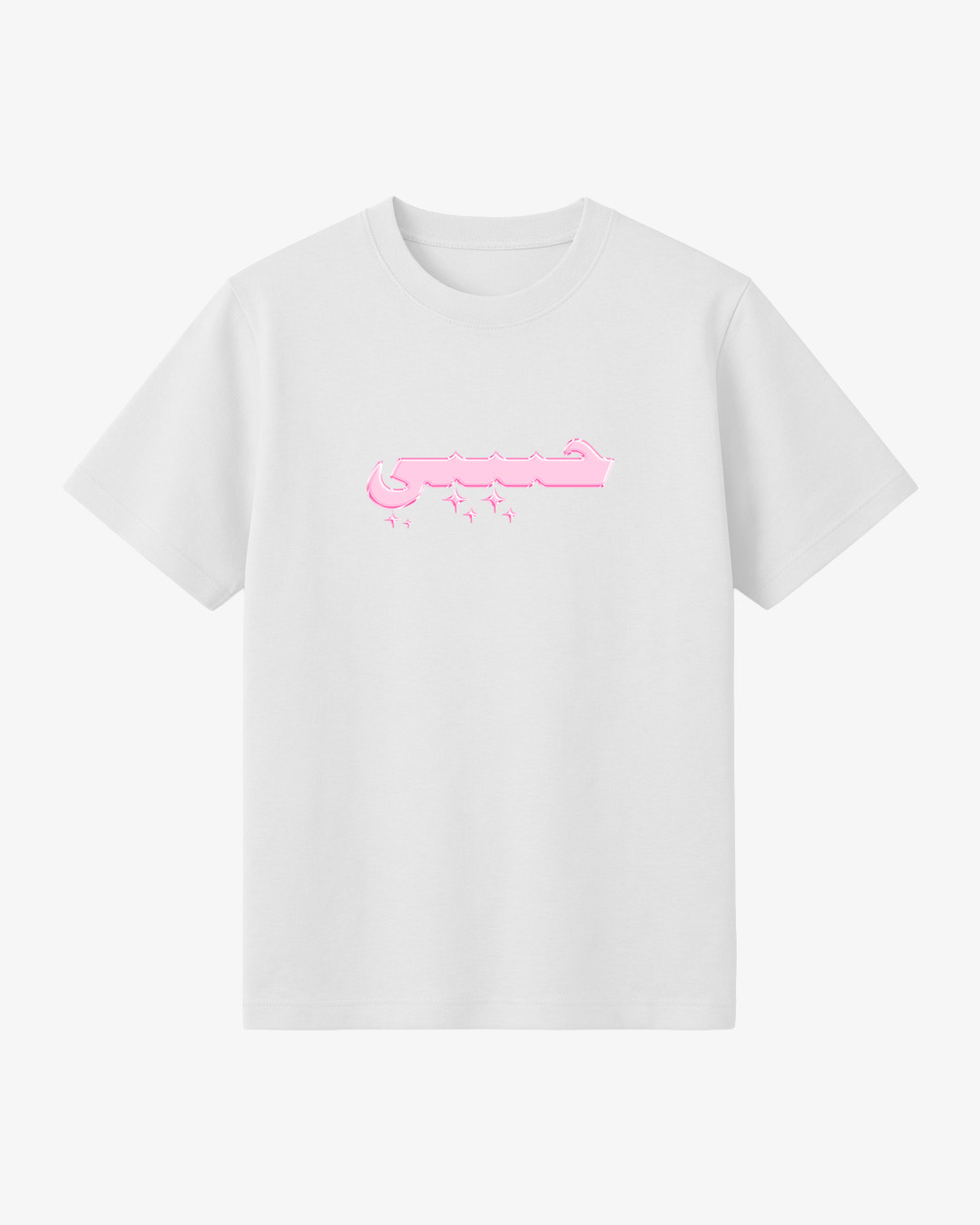 Habibi Bubble Gum T-Shirt. Auf dem Print steht “Habibi”. Super weiches T-Shirt im Relaxed Fit,