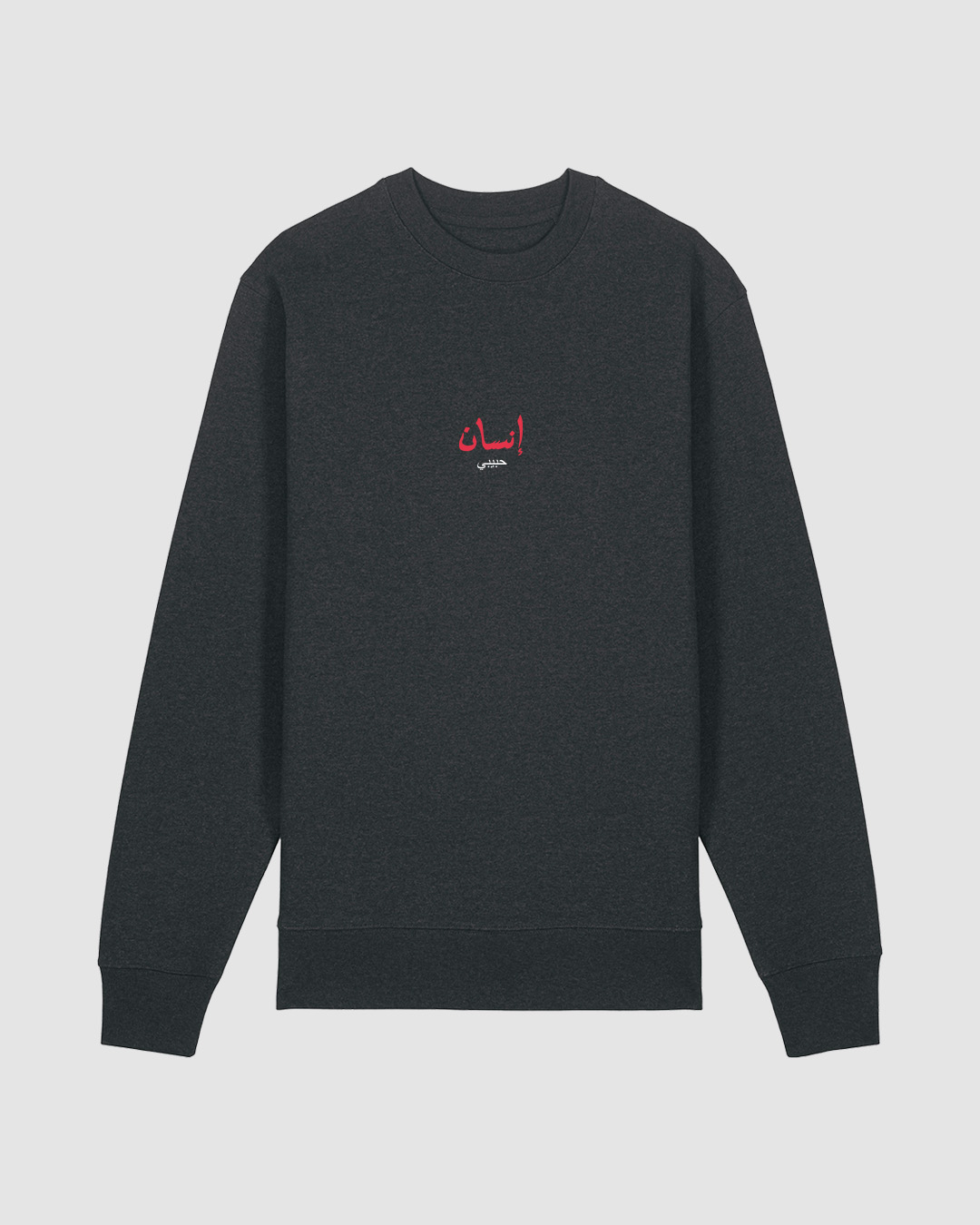 Der neue Habibi College Crewneck in der Farbe Dark Grey. Unisex, oversized.