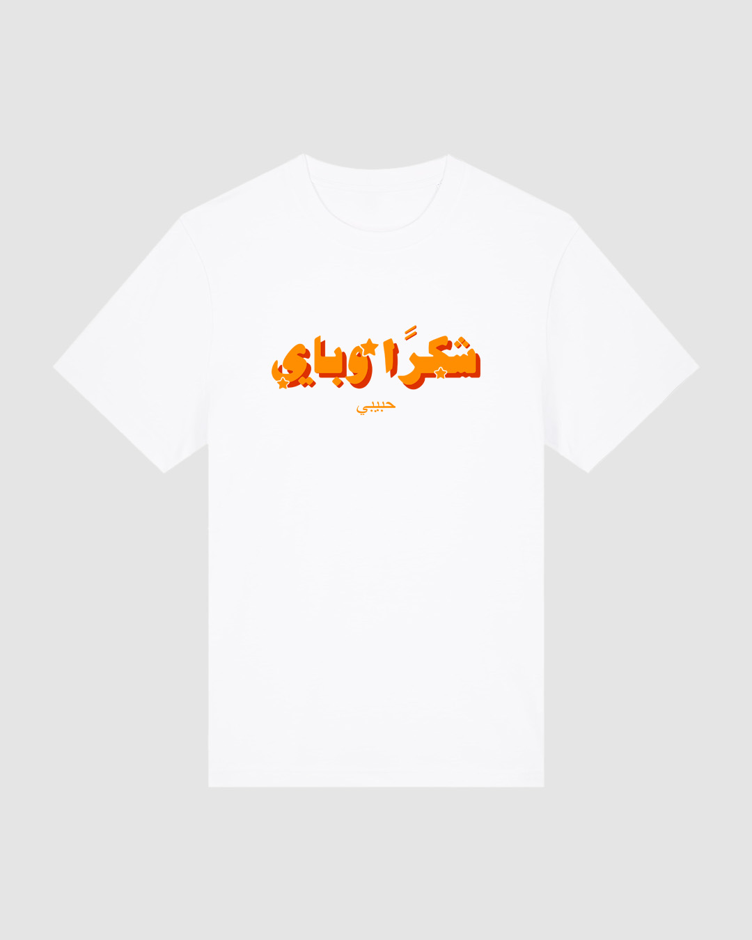 Auf dem Print steht “Shukran u Bye” -> heißt auf Arabisch “Danke und Tschüß”. Super weiches T-Shirt im Relaxed Fit.