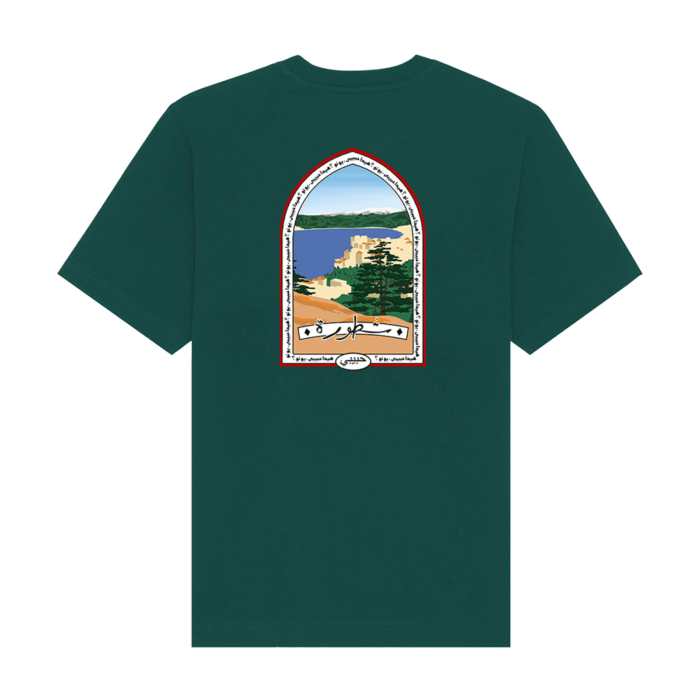 Oversized Habibi x Shatoura T-Shirt. Habibi Logo is embroidered. Design is printed on the back.